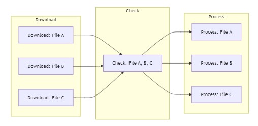 파일 다운로드, 파일 체크, 데이터 처리 등 다수의 태스크를 관리하는 DAG에서 Task Grouping을 활용하면 다음과 같은 방식으로 구현할 수 있습니다.