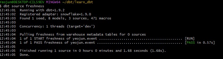dbt source freshness # 업데이를 한지 오래되어서 Error 발생